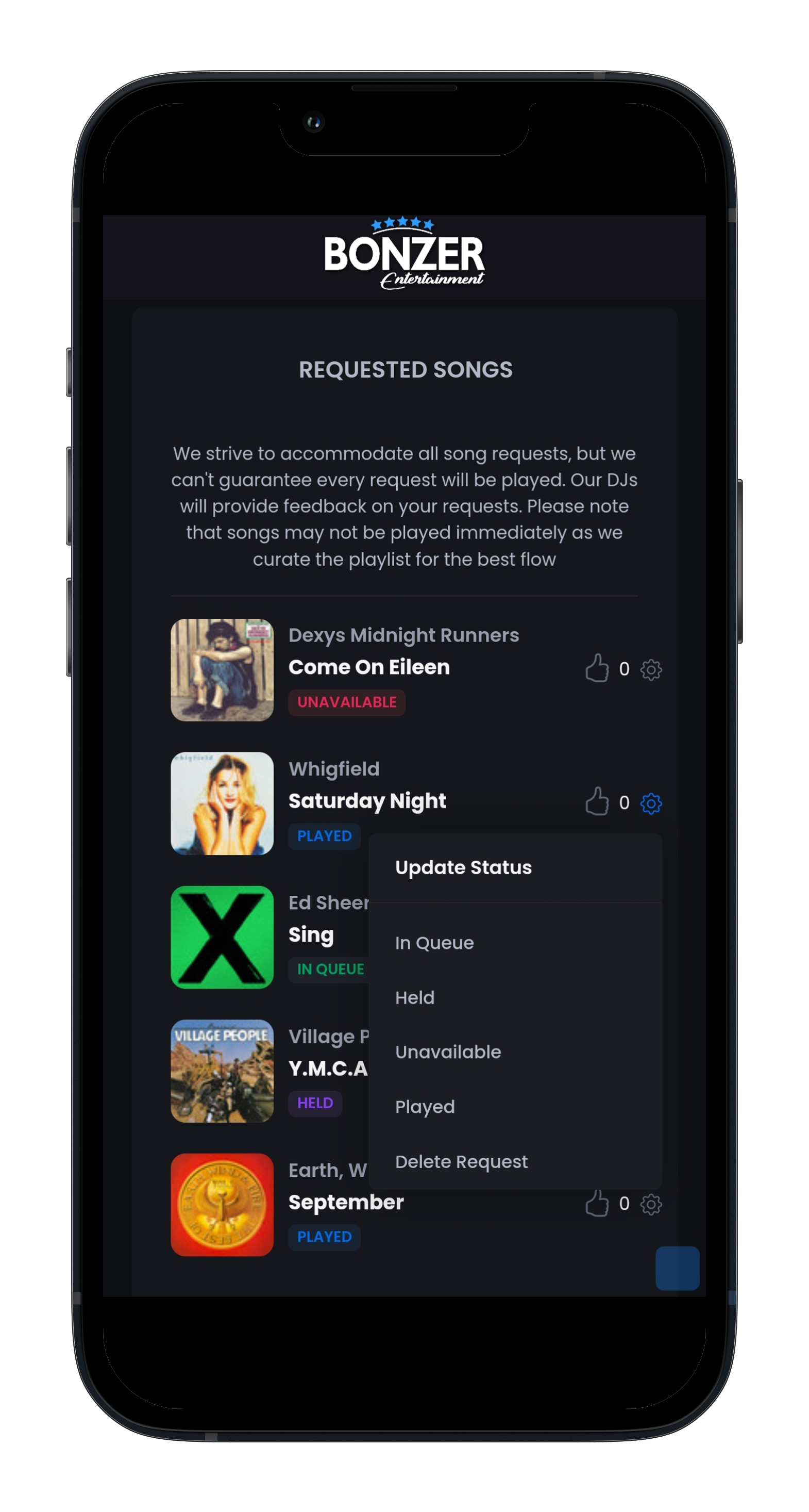 • Allow your customers to add song requests before their event using our music search system, preventing obscure, incomplete or genre based requests - Limit how many requests customers can add.
